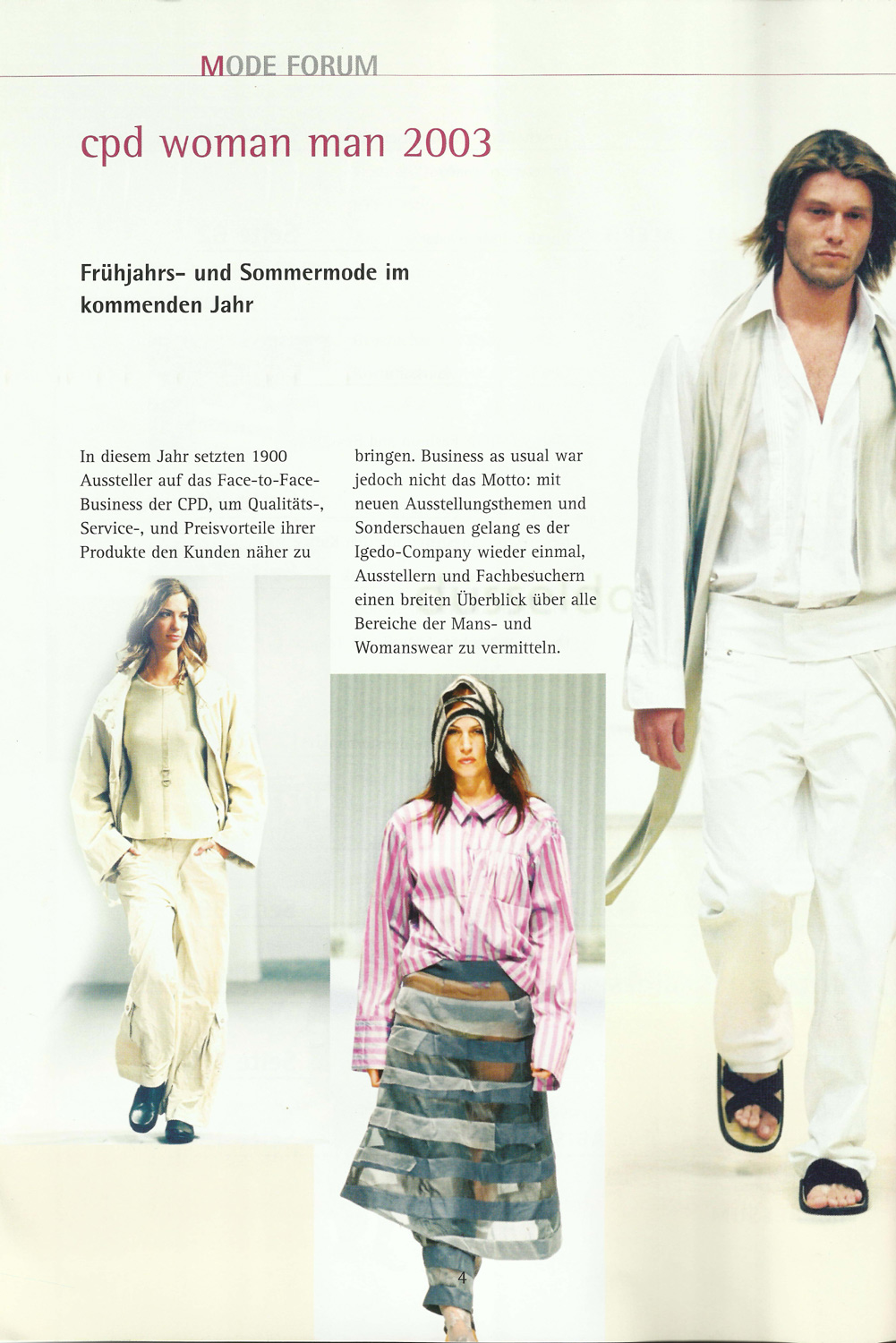 Das Magazin "Kö-Journal" präsentiert seinen Lesern Neuigkeiten rund um die Themen Mode, Lifestyle und Kultur. Der Fokus liegt auf News aus Nordrhein-Westfalens Landeshauptstadt Düsseldorf. Für die Redaktion berichtete ich als freier Redakteur von der CPD Women/Men 2003 in Düsseldorf. Neben Trends der kommenden Saison stellte ich in meiner Reportage die Designerinnen Annette Görtz und Anja Gockel vor.