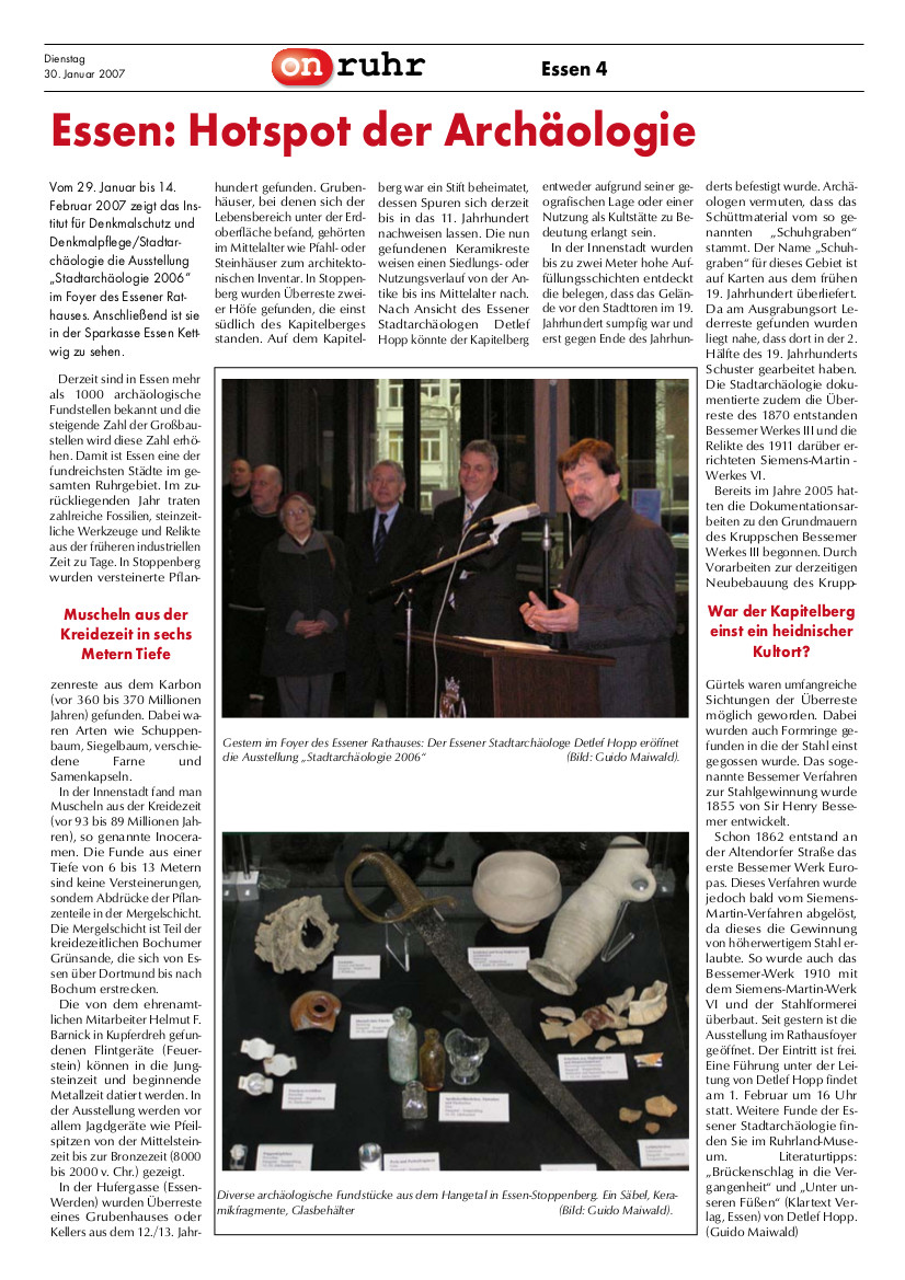 "Essen: Hotspot der Archäologie" - Reportage Stadtarchäologie in Essen, OnRuhr, 30.01.2007