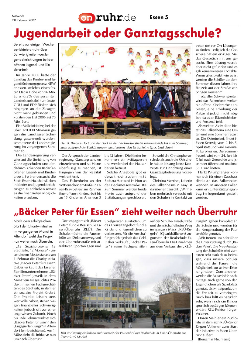 "Jugendarbeit oder Ganztagsschule" - Reportage und Kommentar, OnRuhr, 04.01.2007