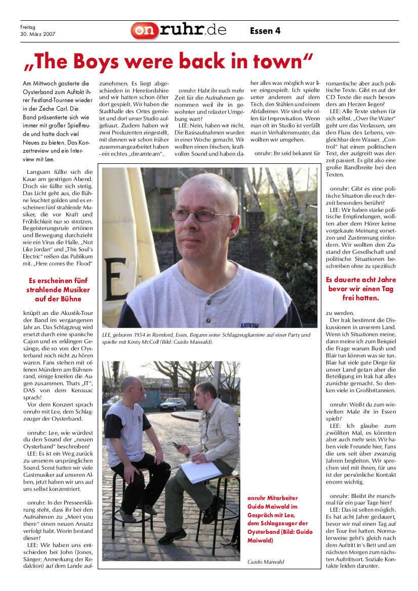 "The Boys were back in town" - Interview Oysterband, OnRuhr, 30.03.2007