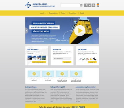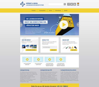 Relaunch Onlineshop: Grönheit und Weigel, Ladungssicherungssysteme, KrefeldIm Jahre 2013 fand der Relaunch des Onlineshops von G&W statt. Das Unternehmen ist in Deutschland eines der führenden im Bereich Ladungssicherung und bietet seinen Kunden neben Ladungssicherungsprodukten eine intensive Beratung und Schulungen. Als Texter und Redakteur lieferte ich Produkttexte und Imagetexte, natürlich suchmaschinenoptimiert (SEO). |