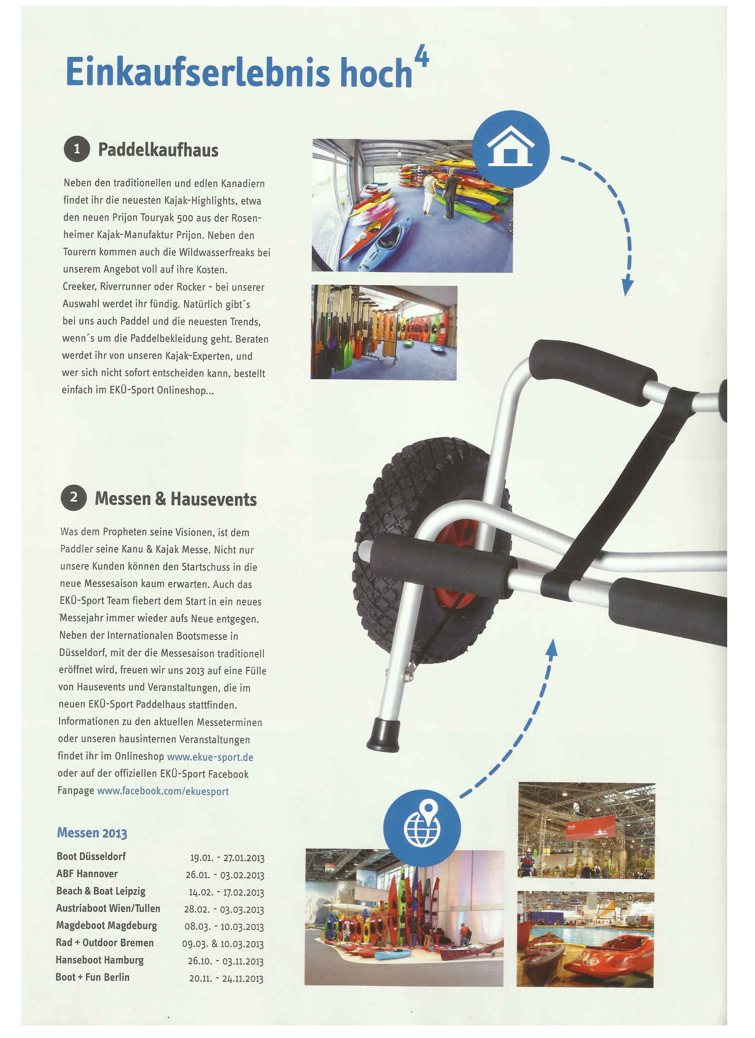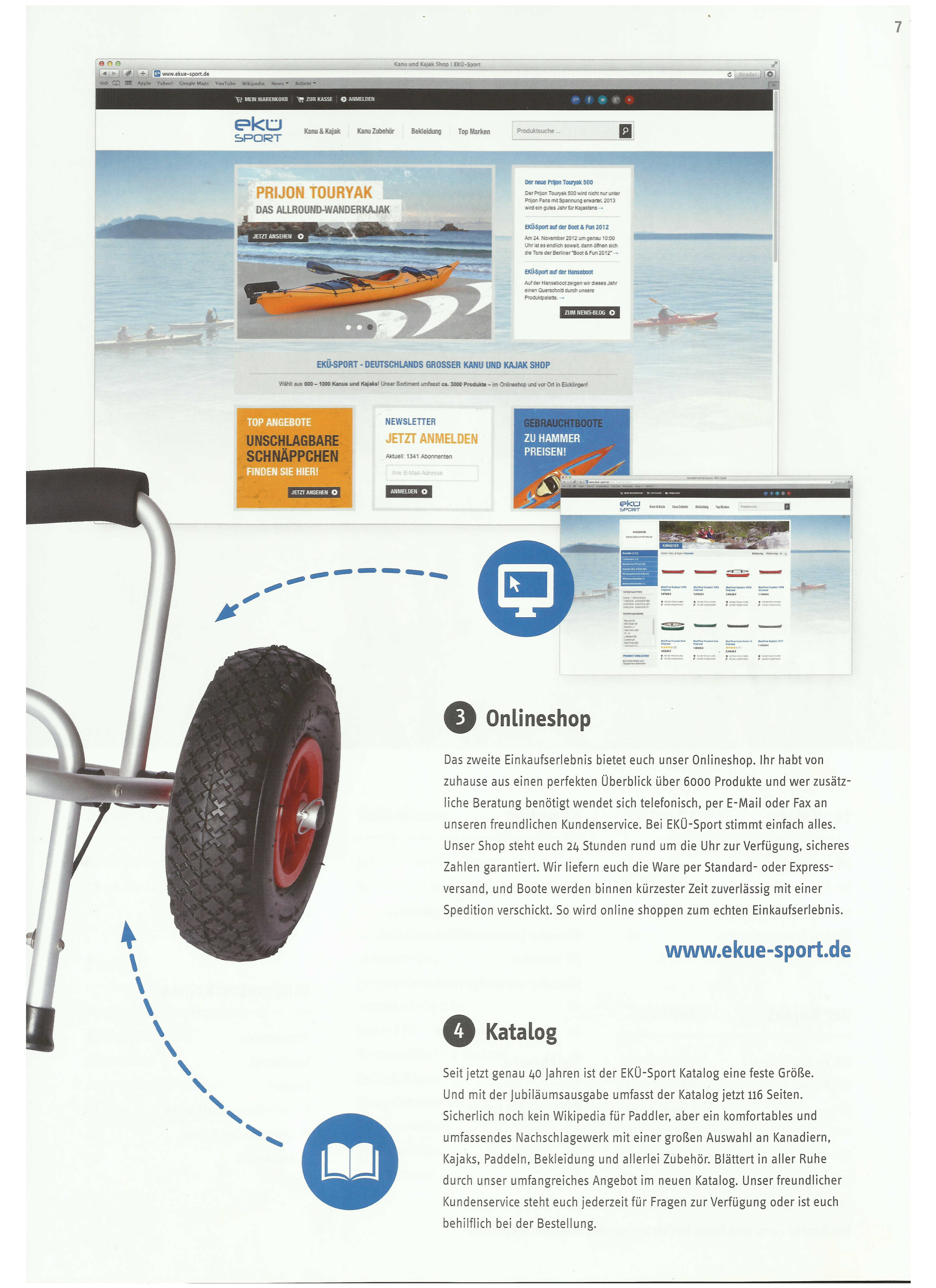 Produktkatalog 2013/2014: Ekü-Sport, Kanu- und Kajakshop, CelleIm Januar 2013 entwarf die für die Unternehmenskommunikation zuständige Agentur den Produktkatalog 2013/2014. Aufgabe war es, den Erlebnischarakter dieser Sportarten in den Vordergrund zu stellen, um dadurch die Wertigkeit und Haltbarkeit der angebotenen Produkte zu transportieren. Alle redaktionellen Beiträge, Produkttexte und Imagetexte wurden von mir als Texter und Redakteur geliefert.